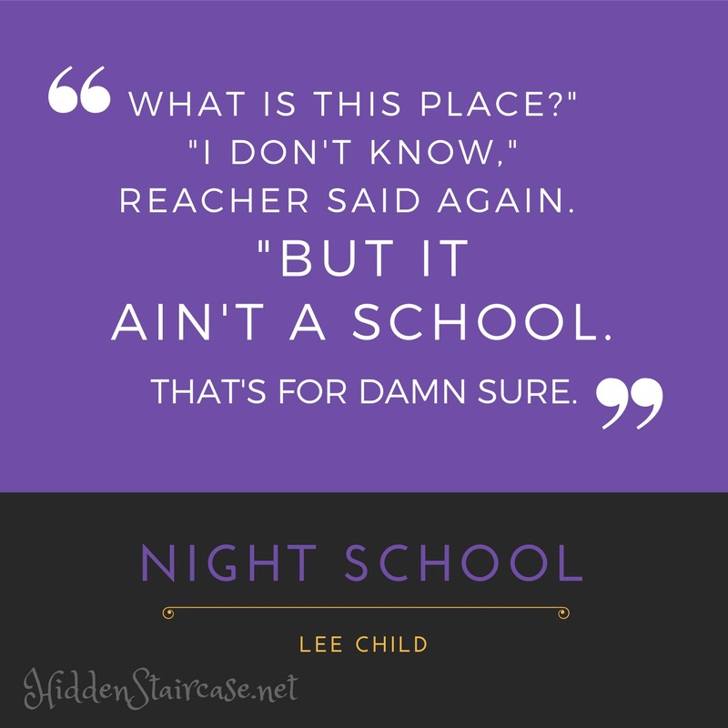 Night School is a little different than the typical Reacher formula we’ve come to know and love. Mr. Child takes us back in time twenty years to 1996. (This is according to the book summary. I can’t find a year in the book anywhere, but I could have missed it.) Reacher is still in the Army (very late in his career I think). He’s fresh off of a secret assignment that’s resulted in a(nother) Legion of Merit medal. He is quickly sent on his next assignment, to participate in a course for inter-agency cooperation. Reacher thinks one step ahead as always, and quickly realizes the assignment isn’t as it seems.